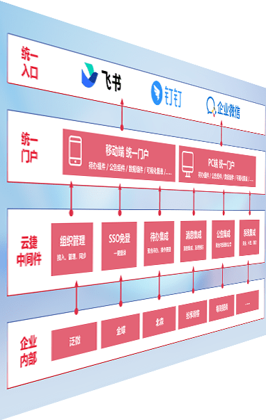 对协作平台提供支持服务,,支持企业应用与协作平台对接,,,,包含组织同步、、、、消息集成、、、待办集成等。。。支持目前主流的协作平台:钉钉、、、企微和飞书。。。